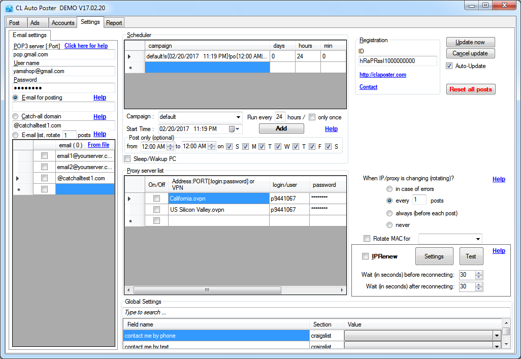 Order | DEMO | Screenshots | Craigslist Auto Poster | Affiliates